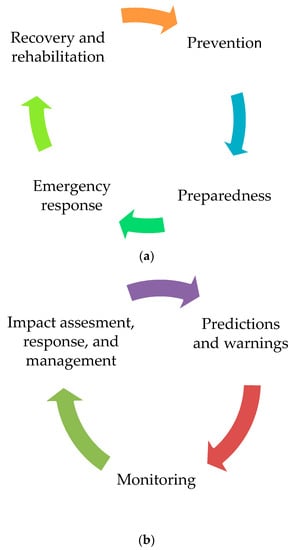 (a) Disaster reduction cycle; (b) research themes corresponding to the cycle.
