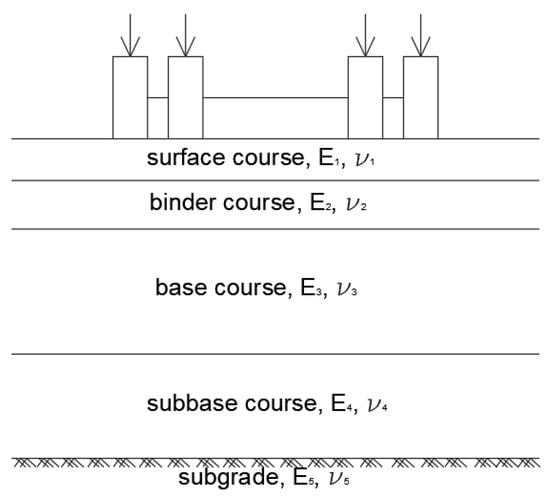 The other method used for simulating the pavement design process is that based on the solution of an elastic multi-layer system. In this study, the KENLAYER application for flexible pavements included in the KENPAVE software is used (see [8]). It computes stresses and strains in the multi-layer pavement system (see Figure 2) by conducting a damage analysis and estimating the life of a pavement system. The following main inputs are needed: