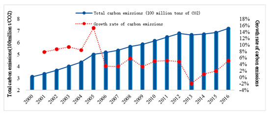 Carbon emission per unit area of URBs in China and its growth rate. (Note: The data from the National Bureau of Statistics of PR China/ http://data.stats.gov.cn/english/).