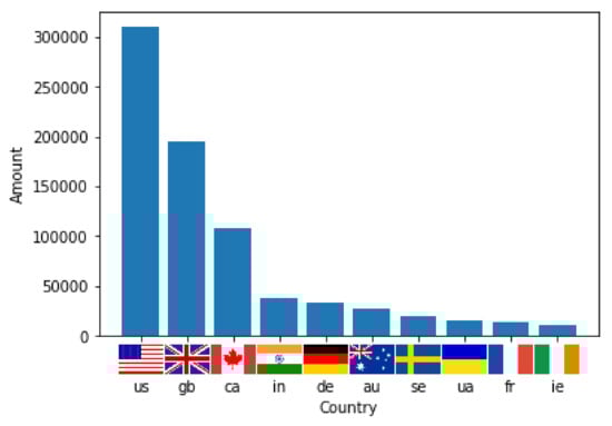 The country categorization was conducted using the information from the display location and user description fields; 71.5% of the accounts had location information. Figure 4 shows that English-speaking countries accounted for the most tweets, which was expected because the data had English tweets only.