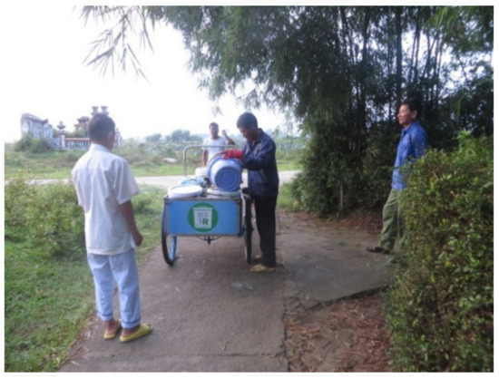 In-depth interviews were also held with residents introduced by the village leader in Huong Xuan and by the chairwoman of the women’s union in Quang Tho. In-depth interviewing is defined as “a qualitative research technique that involves conducting intensive individual interviews with a small number of respondents to explore their perspectives on a particular idea, program, or situation” [65]. As previously discussed, the residents that were selected needed to be representative of both communities. Thus, these interviewees were all over 50 years old and they had lived in their villages for a long time (i.e., more than 20 years) and had good relationships with other residents. Their opinions were, therefore, considered representative of their entire villages, which have special rural characteristics, such as a sense of community (i.e., close, open-hearted, and trusting relationships between people) [21]. In Huong Xuan, the waste collector, accompanied by the village leader, went to each household to collect organic waste around 5 a.m. every Tuesday, Thursday, and Sunday. At the village leader’s recommendation, five residents were chosen as representatives of the households with whom he always interacted every collection day. In Quang Tho, the chairwoman also appointed five representatives of the five households with whom she spoke with most regularly. The details of the residents are shown in Table 4.