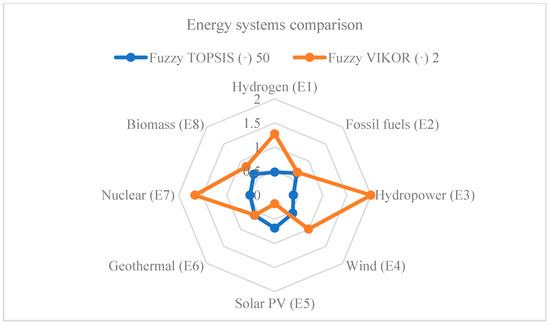 The ranking order of energy systems of fuzzy VIKOR using the weight of group utility.