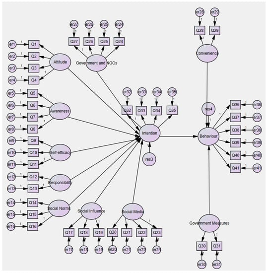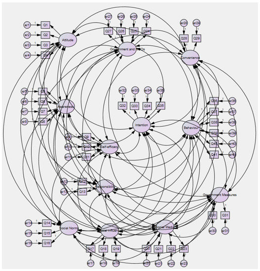 Data gathered through the questionnaire were analyzed using IBM SPSS Amos version 22 [83]—Figure 3.