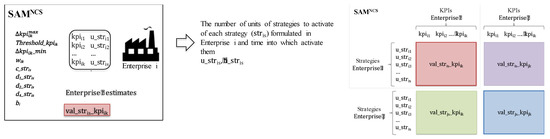 The network enterprises do not exchange information (Figure 1) and work separately. The enterprise i decides the strategies to activate and only considers its own data; thus computing the SAM by contemplating its own objectives oix and strategies stris.