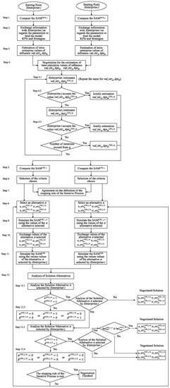 | Step 12.4. | If Enterprise i: and Enterprise j: or Enterprise i: and Enterprise j: or Enterprise i: and Enterprise j: The iterative process stopping rule is not met, and steps 8, 9, 10, 11, and 12 have to be repeated The iterative process stopping rule is met, the negotiation is finished, and a non-collaborative solution is reached |