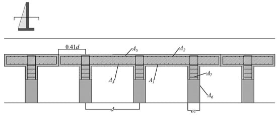 is the bending moment at the connection of the stem to the footing, is the maximum bending moment on the stem, and represents the pressure over the slab on the upper side of the footing. When the spacing of the buttresses is less than 50% of the height, Equation (4) defines the shear resistance (s) at the connection of the plate to the footing. For an accurate estimate of the moments in each section of the stem, as a result of the vertical bending stress in the stem, the trapezoidal pressure distribution is considered [41]. A total of 50% of the maximum pressure at the top of the foundation is taken as the maximum value. Taking into account the vertical bending moment in the upper quarter part of the stem may be insignificant due to the involvement of [41].