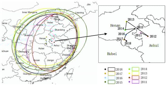 | Year | Ellipse Area/10,000 km2 | Center of Gravity Coordinates | Major Axes Standard Deviation/km | Minor Axes Standard Deviation/km | Rotation Angles |