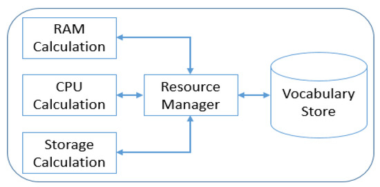 This module has to allocate the resources for each policy graph. The Intent Manager sends requests to the Resource Manager for the allocation of the resources as soon as it gets the reception of the Vocabulary Store information. This allocation is done using the detailed information specified in the policy graph and Vocabulary Store. The design of the Resource Manager makes sure of the suitable allocation of the resources for each of the VNF, conditional on the number of total existing resources. This module contains information about the underline physical resources in its small database, and updates this database after allocating the resource to the request slice. The Resource Manager calculates the number of instances required to deploy the request network service, then assigns the suitable instance favor. This favor represents the quantity of RAM, CPU, and storage. If there are not enough resources available in the physical layer for the requested network slice, then it sends an error to the Intent Manager about the lack of resources. The internal block diagram of the Resource Manager is shown in Figure 5.