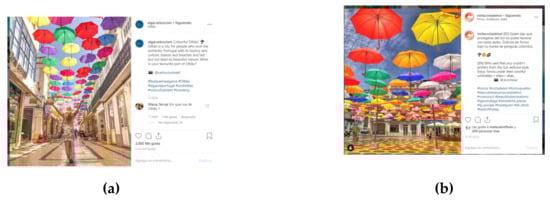Comparison between photos posted by Instagram users. (a) personal account. (b) algarvetourism official account.