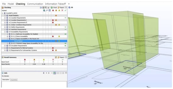 - Eastman, C.; Lee, J.M.; Jeong, Y.S.; Lee, J.K. Automatic rule-based checking of building designs. Autom. Constr. 2009, 18, 1011–1033. [Google Scholar] [CrossRef]