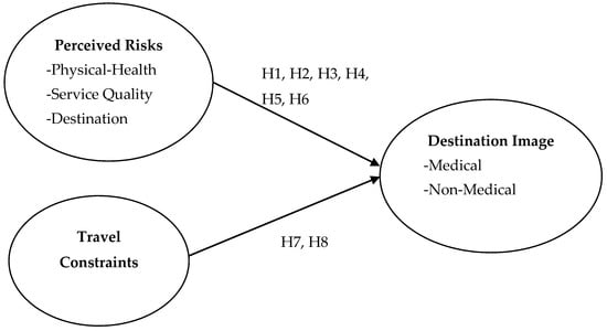 - Khan, M.J.; Chelliah, S.; Haron, M.S.; Ahmed, S. Role of Travel Motivations, Perceived Risks and Travel Constraints on Destination Image and Visit Intention in Medical Tourism: Theoretical model. Sultan Qaboos Univ. Med. J. 2017, 17, e11. [Google Scholar] [CrossRef] [PubMed]