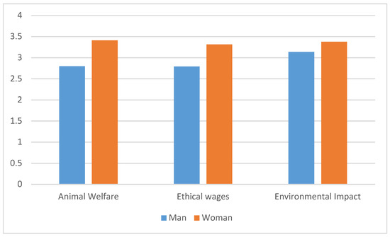 - H2: Is there a difference between the sectorial fashion sustainability (animal welfare, ethical wages, environmental impact) among females and males of the sample, referring to Generation Z?