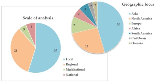 Scale of analysis and geographic focus of CVMA papers in the literature sample.