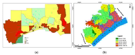 - Akukwe, T.I.; Ogbodo, C. Spatial analysis of vulnerability to flooding in Port Harcourt metropolis, Nigeria. SAGE Open 2015, 5, 2158244015575558. [Google Scholar] [CrossRef]