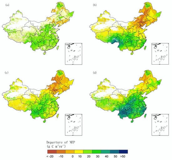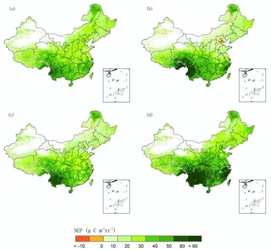 - Tao, B.; Cao, M.; Li, K.; Gu, F.; Ji, J.; Huang, M.; Zhang, L. Spatial patterns of terrestrial net ecosystem productivity in China during 1981-2000. Sci. China Ser. D: Earth Sci. 2007, 5, 745–753. [Google Scholar] [CrossRef]