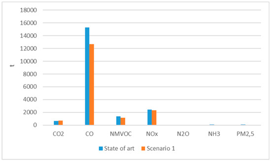 In Figure 7, the comparison between the emission of state of the art and its reduction effects produced by Scenario 1 is shown.