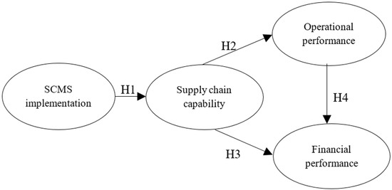 Several empirical studies have shown the direct impact of SCC on financial performance [2,83,86,87]. However, Chang et al. [88] argued that operational performance mediates the relationship between SCC and financial performance. These are seemingly inconsistent ideas. This study views operational performance as a mediating variable that links the effect of SCMS to financial performance. We therefore hypothesize the following: