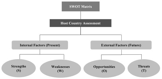 Based on Karakosta et al. 2016 [9], SWOT analysis is approached differently in this paper, compared to how SWOT is typically applied to companies. More specifically, the strengths and weaknesses account for the current host country’s situation assessment regarding the implementation of cooperation mechanisms, while the opportunities and threats take into account the possible future (internal and external) developments that may have the ability to change the current situation (Figure 3).
