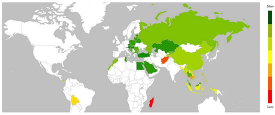 The Belt and Road Initiative (BRI) promotes the countries’ economic prosperity and regional economic cooperation, strengthens mutual learning between civilizations, and enhances peace and development in the world. There is much evidence that affirms the positive role of BRI in encouraging economic cooperation and enhancing gross domestic product (GDP) growth [2,3,4]. Besides, along with many studies that refer to the positive effect of foreign direct investment (FDI) on host countries’ GDP [5,6,7], the World Bank predicted that FDI in BRI countries will increase the positive effect on GDP, trade, and employment, especially for the least developed countries [8]. The majority of BRI countries are agricultural developing countries that need much more investment to enhance agricultural productivity, especially considering that the expectations of the prospects for agricultural resources and food security across the BRI countries are not good [9]. This study spotlights the importance of agricultural foreign direct investment in achieving food security in BRI countries. In particular, this study aims to answer some questions that still need justifications in terms of the relationship between agricultural FDI and food security. First, are there differences in the direction of the relationship between agricultural FDI and food security among BRI countries? If the answer is “yes”, then how can these be explained? Second, is there a direct relationship between agricultural FDI and food security? Third, what is the nature of the relationship between agricultural FDI and the components of the food security index? Finally, is there an indirect relationship between agricultural FDI and food security through total factor productivity? This study attempts to answer these problematic questions.