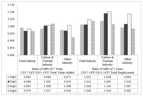 MPI for the culture- and tourism-related industry value added by four groups.