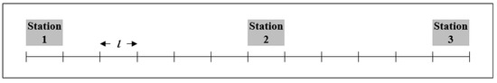 In this study, the optimal system design of wireless charging electric tram is developed to determine the capacity and management of battery capacity and to allocate the wireless charging infrastructure. As shown in Figure 2, it is assumed that a railway is divided as segment level with certain length, l, and each station is located at specific point. Then, if the ith segment is decided to allocate the wireless charging infrastructure, then l length of it can be assigned in the ith segment. The wireless charging electric tram can be supplied the electricity wirelessly when it is operating on that segment. Therefore, the allocation position of wireless charging infrastructure should be decided through a mathematical model.