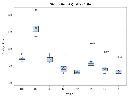 Box-plot of values of Quality of Life Index Source: Own processing.