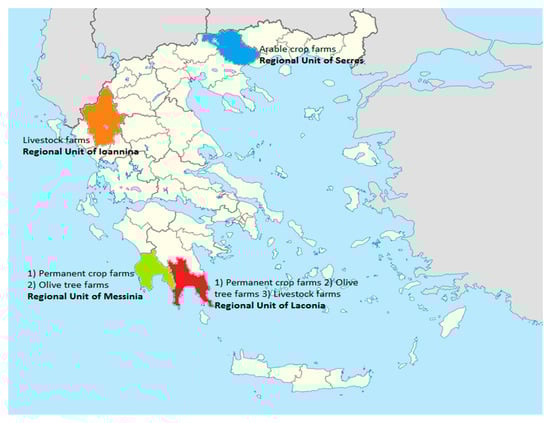 23]. On the other hand, Greek agriculture presents some noteworthy distinctive features compared to the majority of EU countries, such as the highest share of permanent crops (tree cultivations and vineyards) in the total utilized agricultural area (UAA) among EU countries [