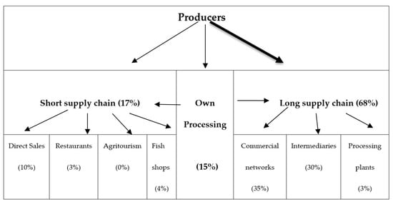In the case of aquaculture products, long (with multi-links) or short (up to a maximum of one intermediary) chains can usually be discussed.