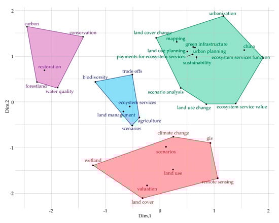 Multidimensional scaling analysis of high-frequency keywords in the field of land ecosystem services.