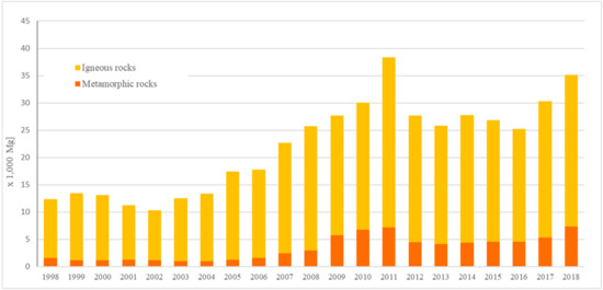 Production of igneous and metamorphic DSCR in Lower Silesia between 1998 and 2018 [11,37,38,39,40,41,42,43,44].