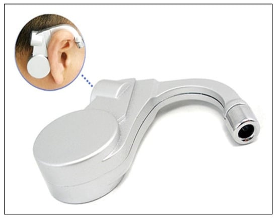 Figure 4 measures the tilt of the driver’s face with a tilt and vibration sensor on the ear flap and generates a vibration when a certain tilt value is detected [11]. Currently, no product has applied this function. However, it could be applied to prevent drowsy driving in the future.