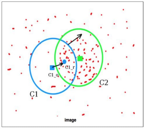 Figure 8 shows that the eyes of drivers can be continuously tracked by applying the mean-shift method to continue to track them even when they move. The mean-shift is a method used to find the peak or center of gravity of data distribution, which indicates the algorithm is moving to a data-dense area and the center of the distribution. When the data are distributed on a 2D plane, the process of finding the densest peak point of the data is constructed by the following methods [15]: