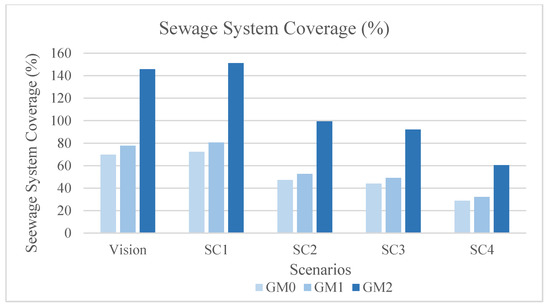 Sewage system coverage outcomes according to GM0, GM1, and GM2 in SC1, SC2, SC3, and SC4.