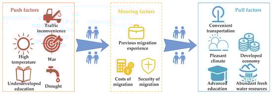 (3) Constraints or facilitation factors from individuals and society, i.e., mooring factors, such as previous migration experience, migration cost, and migration security.