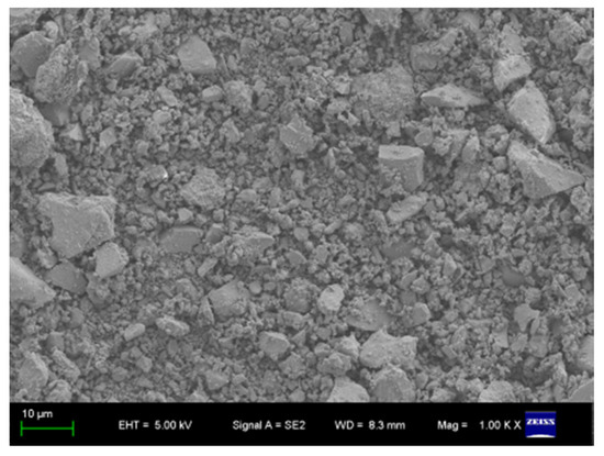 The PbO, TiO2, SiO2, CuO, and Fe2O3 powders were mixed evenly according to a certain mass fraction and were then put into the stainless steel ball mill and mixed with a certain amount of dispersant. The control of particle size was achieved through the adjustment of the ball mill mesh, feed volume, the number of steel balls, steel ball size ratio, ball mill speed, and other variables. PbO-TiO2-SiO2-RxOy solder with a particle size range of 1~25 µm was obtained, and the average particle size was guaranteed to be 12.15 µm. Figure 1 shows the SEM diagram of the encapsulated solder powder. The cylindrical solder for the experiment was obtained by pressing for 12 min under 8 MPa pressure with a powder press, and the particle size was 30 µm.