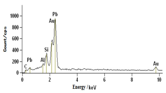 Figure 5 shows the results of wetting at different temperatures, the interface between the sealing solder and the glass substrate. There is a hot plate to rise the temperature to 450 and 470 degrees Celsius. At the lower limit temperature (450 °C), it can be seen from Figure 5a, from the micro morphology, that the sealing solder has basically covered the surface of the glass matrix and is closely connected with the glass matrix, but the wettability is not ideal, and there is a clear boundary between the solder and the glass matrix. At the interface between solder and glass matrix, the particle block structure and liquid phase structure coexist, which indicates that the component with a lower melting point in solder at the interface has melted into the liquid phase, showing certain fluidity and filling the "gap" between the solder and glass matrix surface, but the un-melted particle structure hinders the flow of the liquid phase. In Figure 5a, the "river bed" is due to the filling of the liquid phase structure defect formed by voids. When the temperature of the sealing solder rises to 470 °C, it can be seen from Figure 5b that the sealing solder has completely covered the surface of the glass substrate and no obvious transition zone has been formed. In addition, the solder at the interface is closely connected with the glass matrix without “gap” defects. The results show that when the sintering temperature is increased, the main components of the solder are melted. At this time, the sealing solder should have good fluidity, and the wettability between the sealing solder and the glass substrate surface becomes better. The energy spectrum of transition zone A is tested, as shown in Figure 6. The results show that the atomic number fraction of Si and Pb in zone B is 3.04% and 68.93% respectively, which is higher than that in raw materials. It is concluded that the transition layer is mainly the mixture of PbO and SiO2, which indicates that PbO and SiO2 in the solder are more conducive to wetting the glass substrate surface and improving the bonding quality between the solder and the glass substrate.