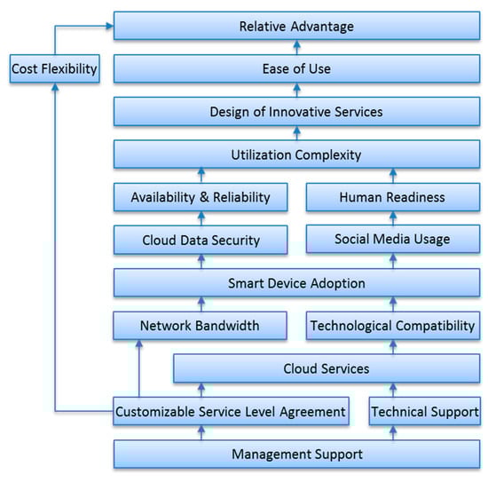 - Raut, R.D.; Gardas, B.B.; Jha, M.K.; Priyadarshinee, P. Examining the critical success factors of cloud computing adoption in the MSMEs by using ISM model. J. High Technol. Manag. Res. 2017, 28, 125–141. [Google Scholar] [CrossRef]