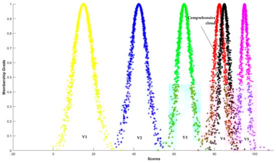 Finally, integrated with the variable weight obtained above, the comprehensive cloud can be calculated [72].