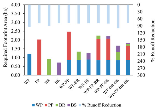 The comparison of different BMP configurations in terms of footprint requirements in 4 ha of development.