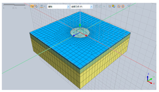 Since the classical yield criterion ignores the frictional component of soil shear strength, such criteria can be used for the undrained analysis of saturated soils, such that φ = 0. The Mohr–Coulomb criterion surpasses classical criteria and considers the frictional component of the soil, which is more suitable for most scientific research and engineering practice. It is also more widely used in numerical simulation. Finite-element software Midas/GTS NX was used for numerical simulation analysis on the basis of the Mohr–Coulomb constitutive model.