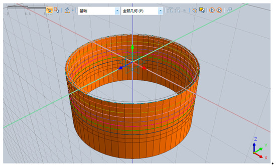 The size of the design-calculation model was carefully selected to be 300 m long, 300 m wide, and 100 m deep. Errors in slot sections at segmentation were caused by errors on the construction site. The channel sections neighboring certain modelling errors were collected by overlap. Thus, the thickness of the simplified underground continuous wall was calculated as 1.3 m. The model was divided into various sections (Figure 5 and Figure 6).