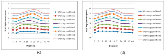 6] conducted a related investigation on the factors affecting the displacement of typical structural types (filling and excavation). Soil traits were regarded as ideally elastoplastic, and it was noted that the displacement of the soil was not the only factor; the physical properties of the soil and the wall, as well as the location of the erected supports also contributed. That study did not involve ground settlement around the foundation pit, and the quantitative analysis of wall displacement was insufficient. Faheem et al. [