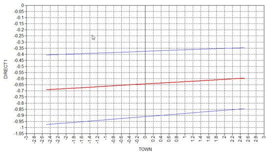 The graph shows that the lower and upper confidence limits of the parameter do not contain the zero value of the moderation effect. It is claimed that there is a positive interaction effect—with the increase in the number of years of living in the city, there is a stronger positive effect of the combustion dimension on the grief about leaving the place of residence.