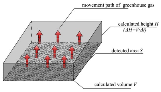 In Figure 2, detected area S is the contact surface of the asphalt mixture with atmosphere. This surface is mainly determined by the detection scheme in the carbon emission of the asphalt mixture. Calculated height H refers to the diffusion height of the carbon emission from volatilization of asphalt mixtures itself at Δt time, and calculated volume V is the product of calculated surface area S and height H.