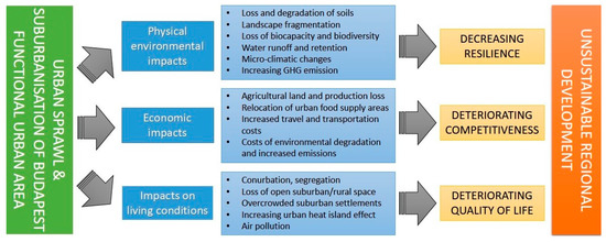 The impacts of urban sprawl on the functional urban area of Budapest. Source: elaboration of the authors.