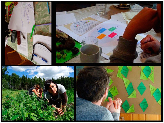 This leads to the concern about rural–urban disconnection, which is addressed in the daily activities on both farms. At the moment, food production guarantees most of the income for the biodynamic farm, via gardening and animal husbandry (used for manure only). Vegetables are sold to local restaurants and schools, and at a self-service on-farm shop. Moreover, for several years, the farm owner has been negotiating with the local municipality to preserve the land from urban development. The hope is to maintain the core farming activities while expanding caring, recreational, pedagogical, and residential opportunities (Fut-workshop). In the case of the care farm, gardening is mostly done for self-consumption and to ensure healthy diets for the farm inhabitants. Sheep are mostly raised for grazing and, to a lesser extent, for local lamb production: when meat is sold, buyers are invited to come to the farm to see where and how it is produced (Int. P13, S16). Moreover, practitioners periodically visit local schools to talk about rural livelihoods, particularly sheep shearing and wool-making practices (Int. P11). Finally, both farms are engaged in landscape maintenance and preservation—with special attention to traditional Finnish customs and aesthetics—as well as to biodiversity conservation and regeneration. As stated by one practitioner: “We have put a lot of effort and work to create this place as it is now, so that’s why there is this special relationship with this place” (Int. P10). The manual and affective work of place-shaping is constant, and makes both farms unique beautiful environments for both insiders and outsiders (Int. P11, P18, S2, S16).