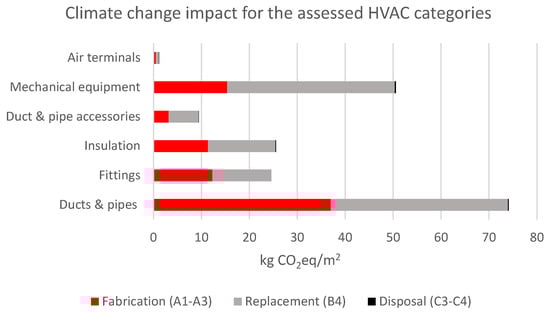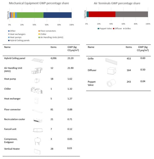 27]. In Switzerland, the GHG emissions during the manufacturing and maintenance of HVAC systems (heating, ventilation, heat distribution) account for about 13% of the total emissions of new office buildings [