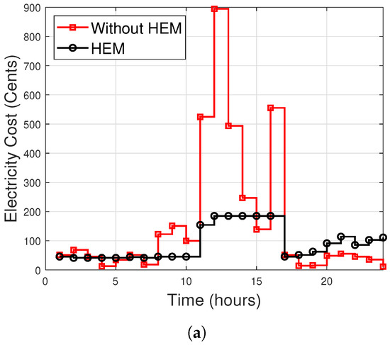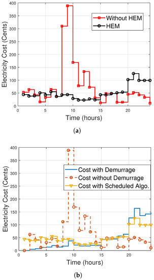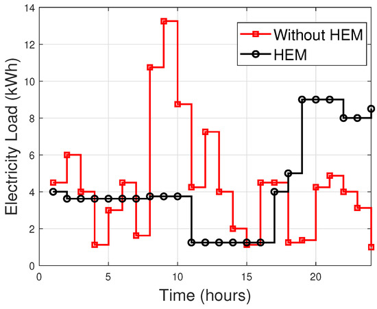 The energy consumption is shifted from on-peak to off-peak hours in a stable manner with the aid of the HEM system. The shift in energy load over a period of time is based on demand and is inversely proportional to the market price of the electricity. It is mathematically represented in Equation (3):
