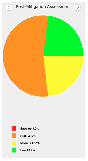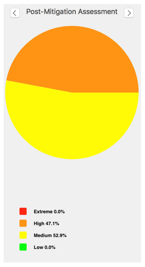 Chart 12 depicts that after the mitigation solutions have been theoretically applied, the atriums have high and medium risks associated with them. The chance of a highly severe risk occurring is 47.1%, and there is still a 52.9% chance that a medium severity risk will occur.