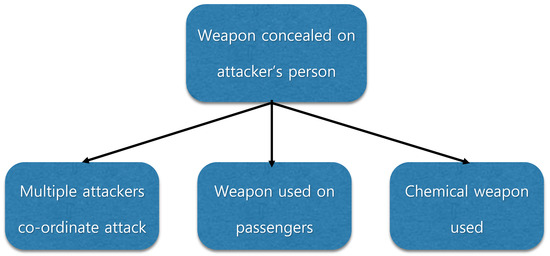 According to [22], technical systems employed presently in metros cannot prevent bringing explosive devices of a certain type into the metro. This is quite worrying and presents us with an area of concern and certainly requires special attention. [23] organised 20 interviews with experts and concluded that there are certain problems when tackling vulnerabilities in preparedness, which result in an inability to ensure that trains are secure when acts of antagonistic violence occur. This outlines another area of concern when it comes to terrorist attempts to cause severe damages to the railway facilities and systems. In addition, [11], after having analysed the capabilities of technical security systems applied to protect high-speed (HS) trains, concluded that there is no protection against terrorist attacks using drones that carry bombs and explosives. To resolve this threat, suppression by radio interference generated by a national security system is proposed to interfere, devalue, neutralise, and remove the harmful device. But the efficiency of this suggestion depends on many factors, very first of which is how reliable the national security system is.